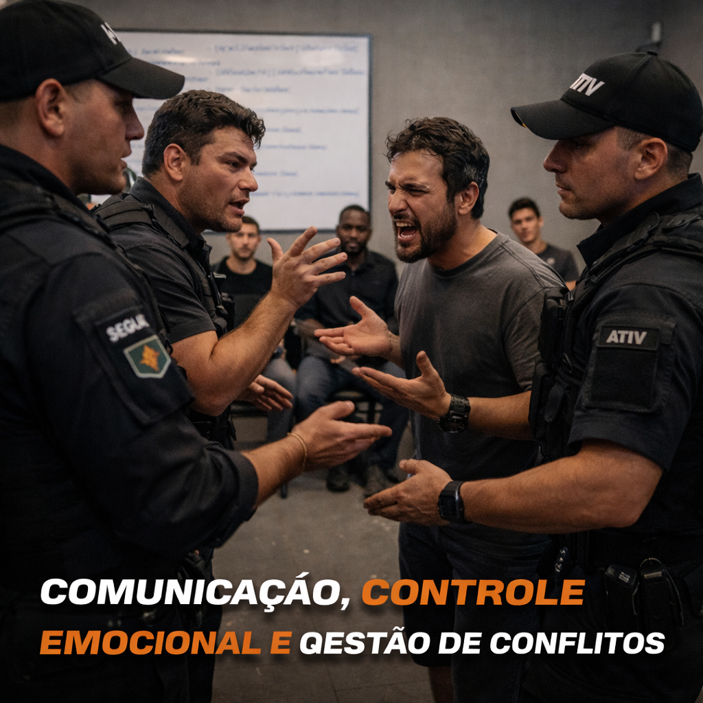 Formação em desescalonamento verbal, domínio emocional sob pressão e condução segura de interações críticas no ambiente operacional.